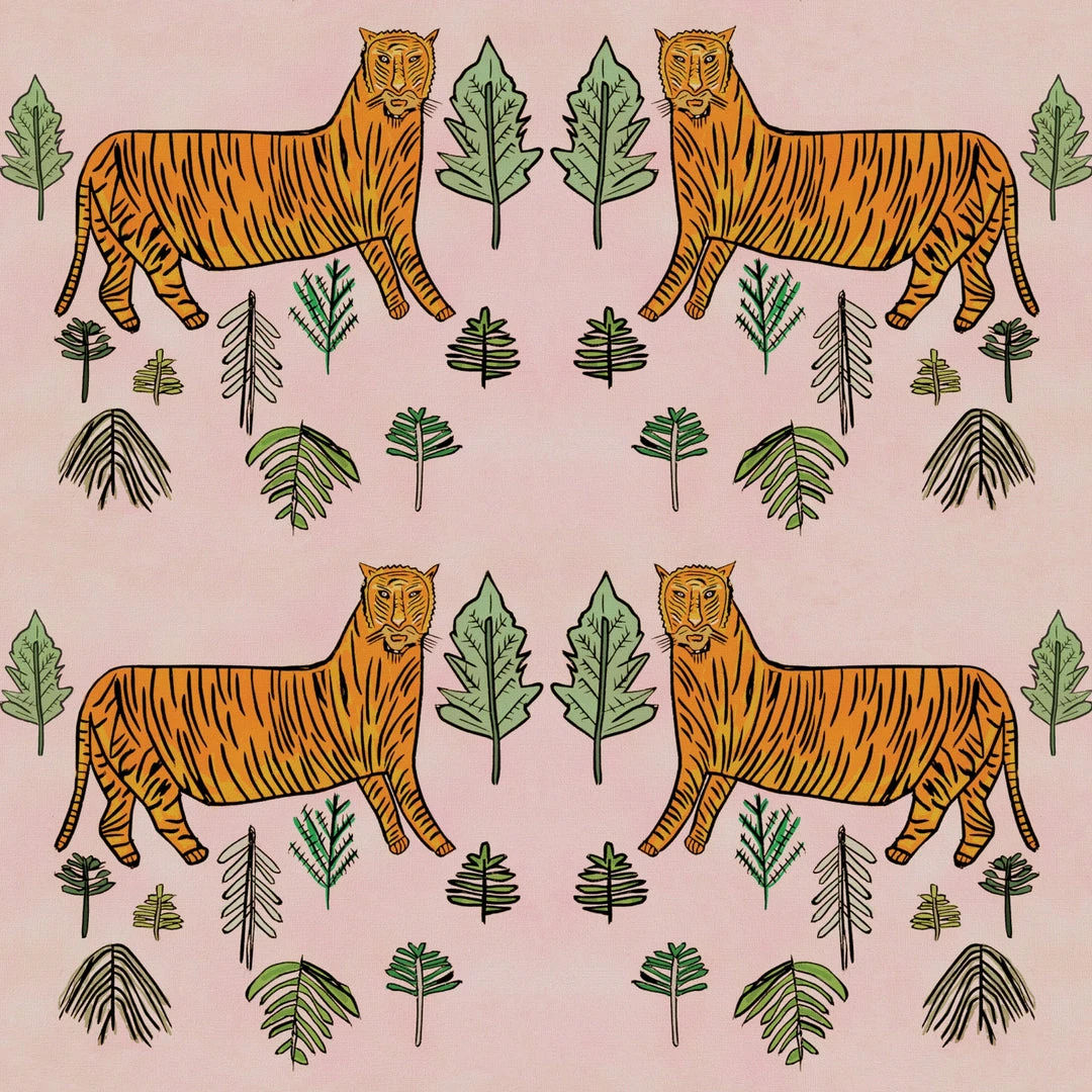 Tiger Tiger is inspired by the William Blake poem Tyger Tyger and was the first wallpaper I designed, for my daughter’s bedroom. It is the wonderment Blake has for the world and the miracle of nature that I wanted my daughter to share. The illustration of the tiger is innocent, however, the meaning is complex and will provoke debate as she grows. This wallpaper is perfect for creating a room with a sense of curiosity and wonder.