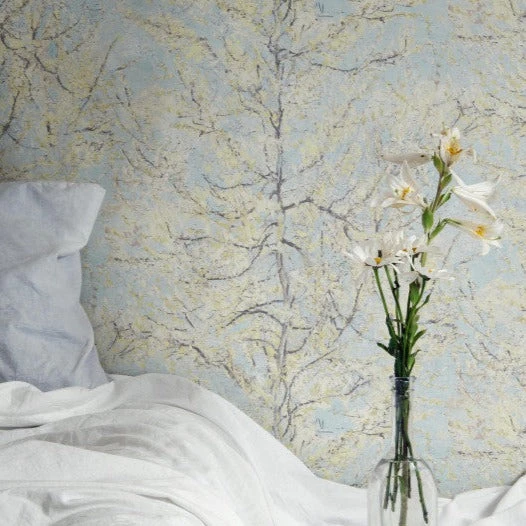 Created in collaboration with BN Walls and the Van Gogh museum. This wallpaper design encompasses vibrant blossoms, textured brushstrokes, the mark of the maker.Β