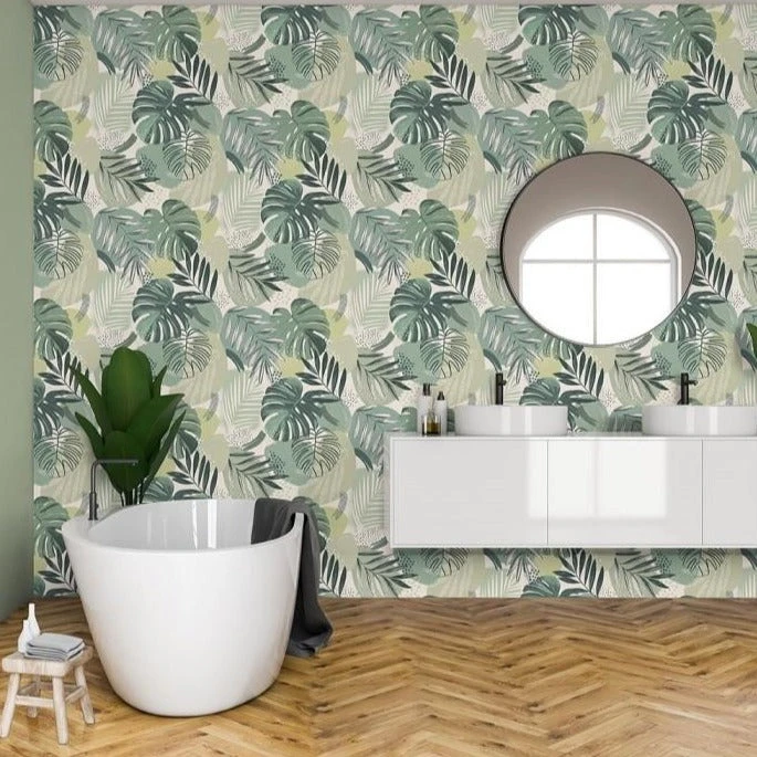 Beautiful hand painted leaves with silhouettes in soft pallets, oο¬ering a calm ambience, suitable for use in a variety of spaces. Abstract Jungle by Brand McKenzie really does whet the appetite for adventurous thinking transforming rooms.