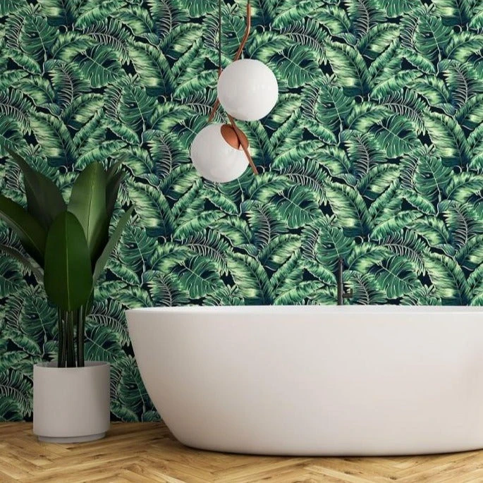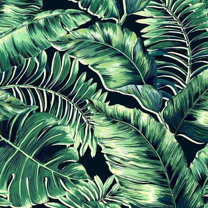 Banana leaves is a bold scale wallpaper. It is an inspiring hand drawn piece of art with a variety of leaves that are large, wide, elongated, and slightly rounded. The surface of the leaves is easy on the eye as they appear waxy, flexible, and glossy. Although the colours are generally lime, olive green to dark green, here Brand McKenzie have designed alternative colours that sit comfortably within many home environments. Available in Black &White, Leaf Green, Blush Pink