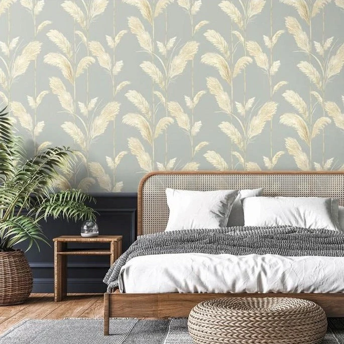 Soft muted tones show the beauty of Pampas grass, a perennial plant that can reach 4 metres in height. The long sharped-edged leaves fold at the midrib and form a dense tussock. A wonderfully designed wallpaper by Brand McKenzie that sits beautifully in any room within the home.