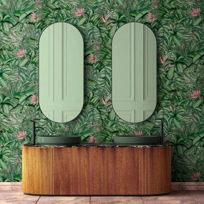 A tranquil view of jungle foliage, calming the mind as we gaze upon the vibrant leaves, flowers and insects deep within the tropical forest created beautifully by Brand McKenzie.