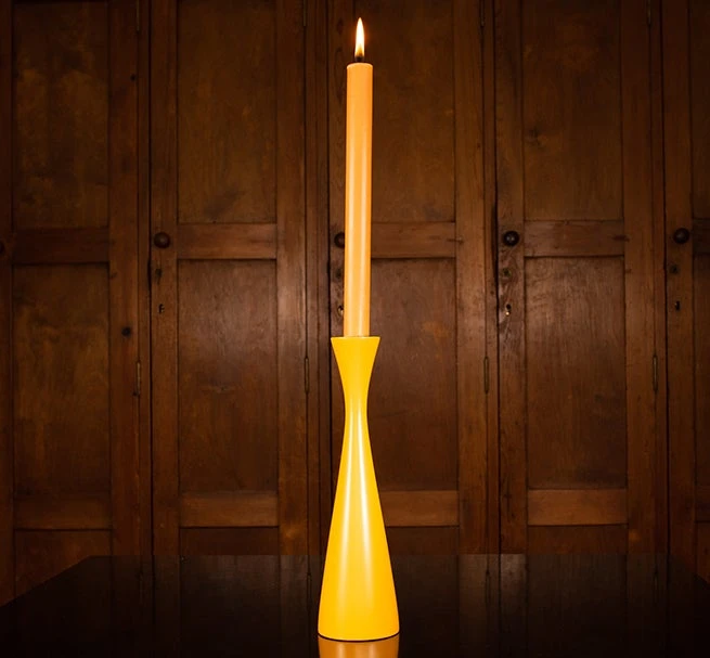 - Add a vibrant touch to your home with the British Colour Standard Tall Wooden Candle Holder in Saffron Yellow. This handcrafted piece is perfect for creating a warm, inviting atmosphere.