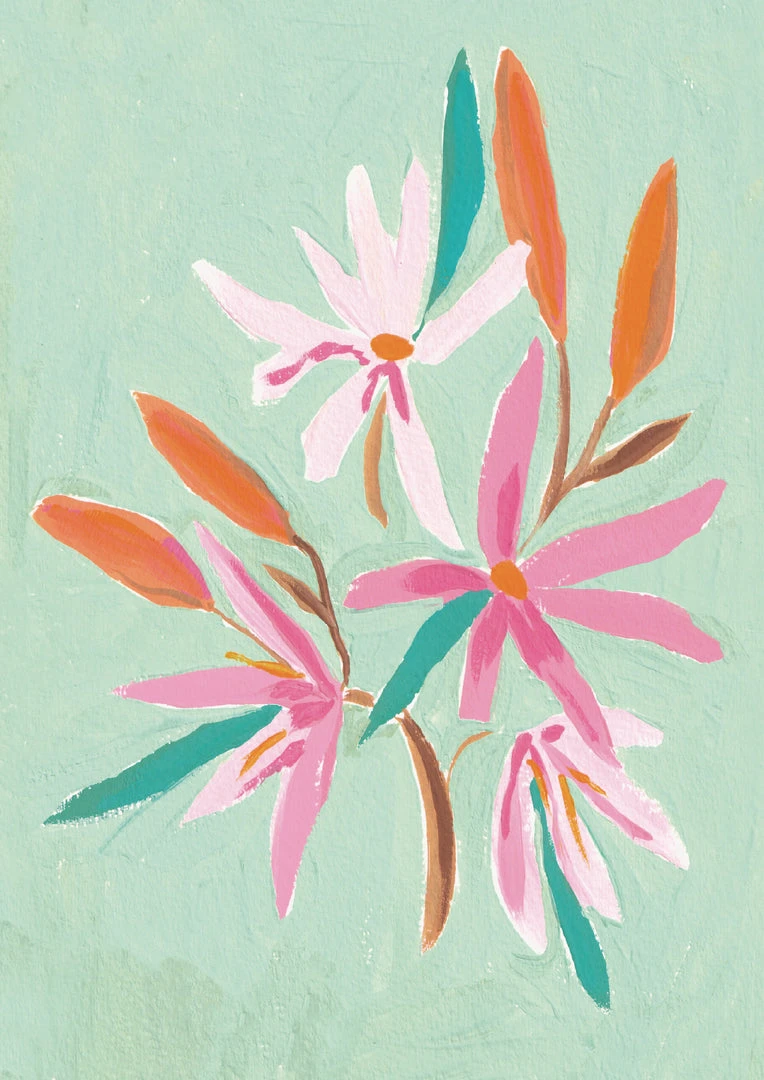 Candice Gray A3 Turquoise Floral Print Wall Art – New Home Decor