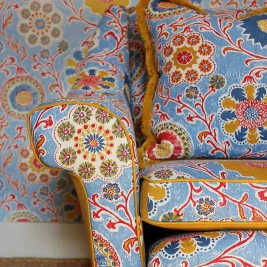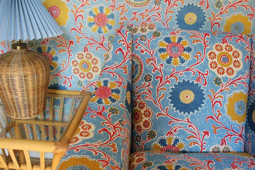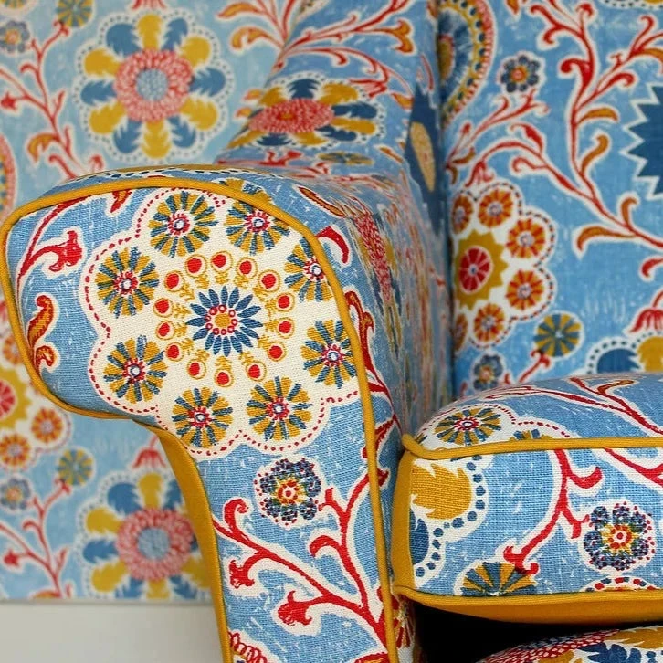 Peacock & Pigeon is a curated collection of salvaged furniture and hand-made original pieces that are upholstered in bespoke hand printed fabric by Ellen Merchant and Carl Batchelor.