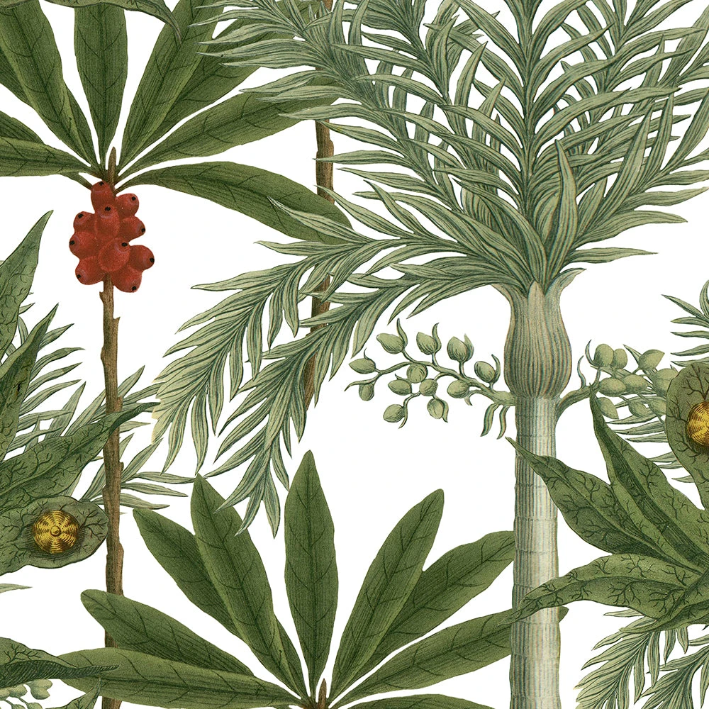 A wonderful and delicate design inspired by the tropical rainforest of Madagascar, showing a mix of specific palm trees illustration.