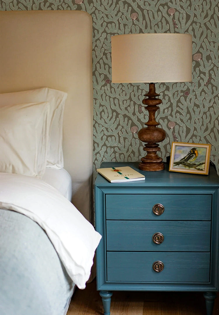 A very versatile pattern inspired by antique botanical prints. This whimsical small-scale pattern will add visual texture into any room. ‘Coral’ was hand painted in the Josephine Munsey matt emulsion colours. See below the recommended paint colours for this wallpaper.Â