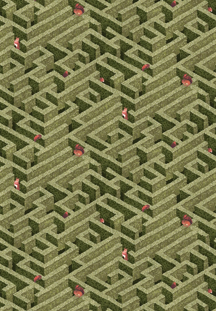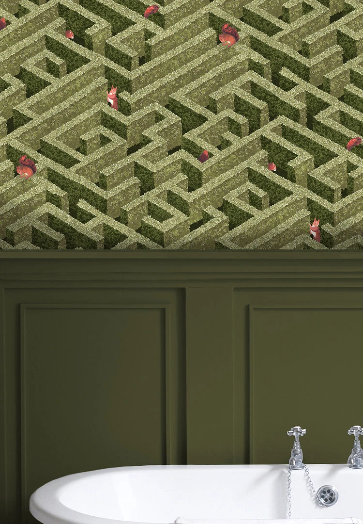 Josephine Munsey Les Jardins Royaux Labyrinth With Squirrel Wallpaper – Nature & Animals Design