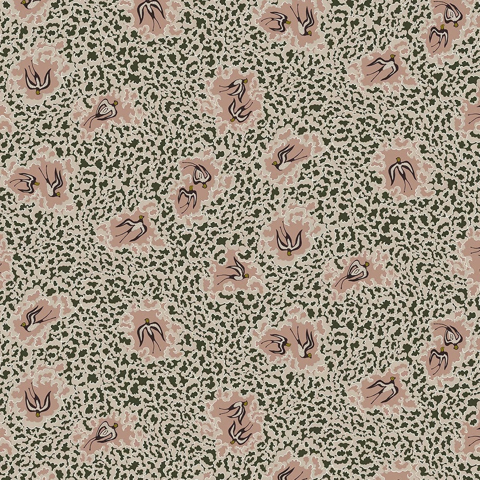 Bea’s Swallows Wallpaper Chaingate Green & Ham PinkÂ