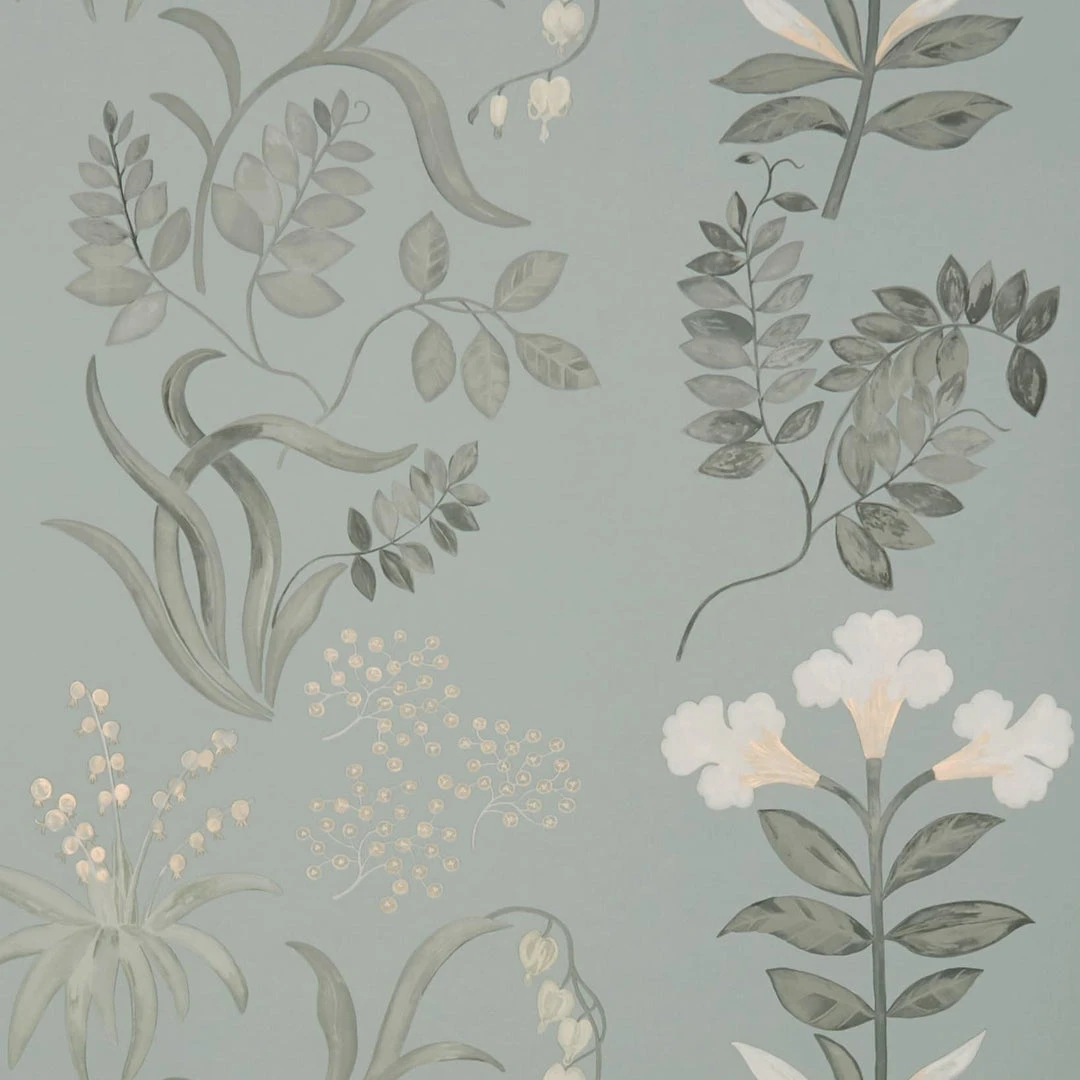 Hand-painted in the Liberty design studio, Botanical Stripe is a signature artwork of the Floribunda collection, celebrating the historic tradition of botanical illustration in Britain. Botanical Stripe is printed using a fine mesh gravure technique, bringing to life the soft painterly nature of the motifs. Matte and metallic pigments are layered in varied degrees of tonality to create a subtle luminescence, reminiscent of Victorian cyanotypes.