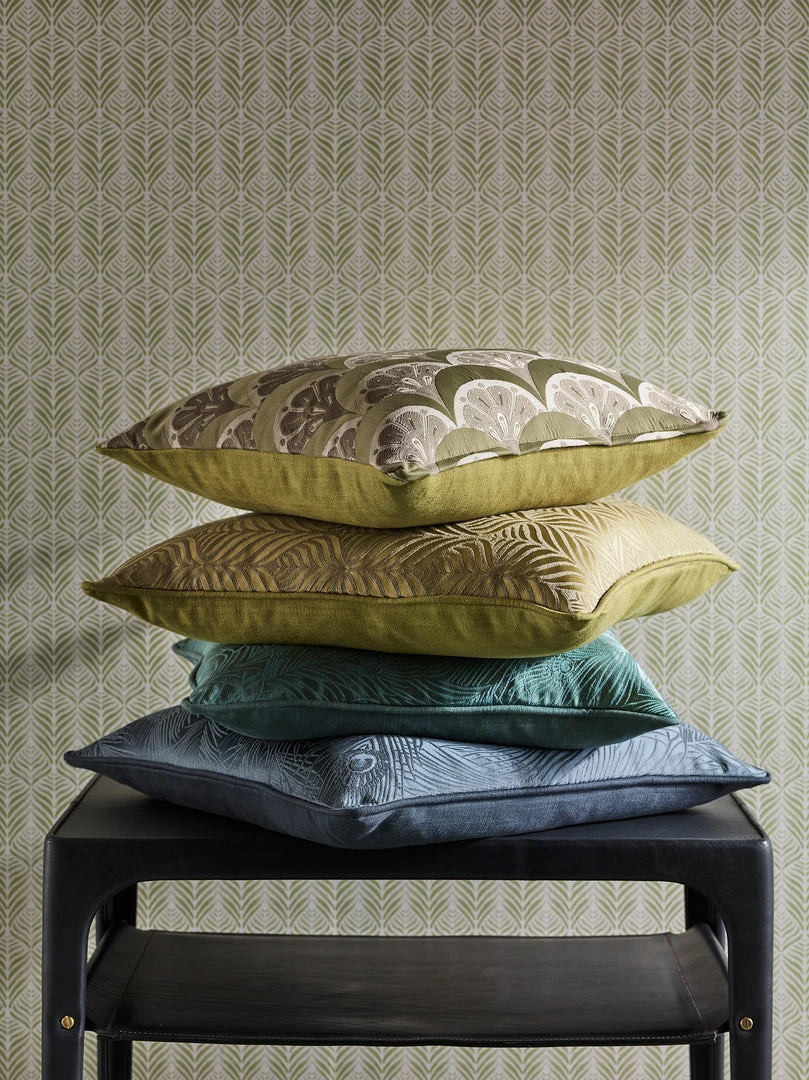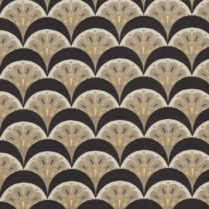 Deco Scallop is inspired by Liberty’s archive catalogues of the late 1890s to 1910s, when beautiful Japanese Art Deco fans and wallpapers were imported alongside fabrics, jewellery, porcelain, screens, and rugs. The motif was developed by the Liberty design studio as a simple contemporary woven jacquard design – a modern take on the Liberty peacock feather and Art Deco fan.