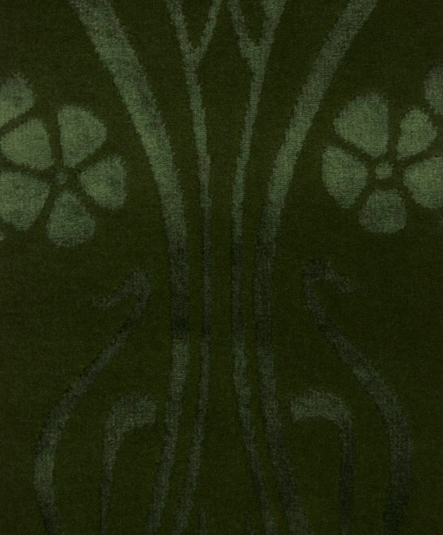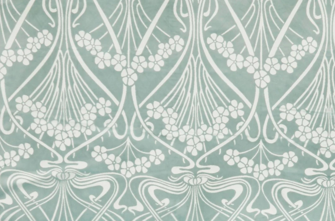 Designed by French artist R. Beauclair in c.1902 and first printed for Liberty in 1967, Ianthe is an iconic example of Art Nouveau design, with its highly stylised flowers arranged into a sinuous layout. It appears on a richly textured mixed-fibre velvet base that’s perfect for high-traffic domestic use. Luxurious in feel and vibrant in colour, this velvet’s elegant drape also makes it ideal for drapery and curtains with blackout or draft-excluding qualities.