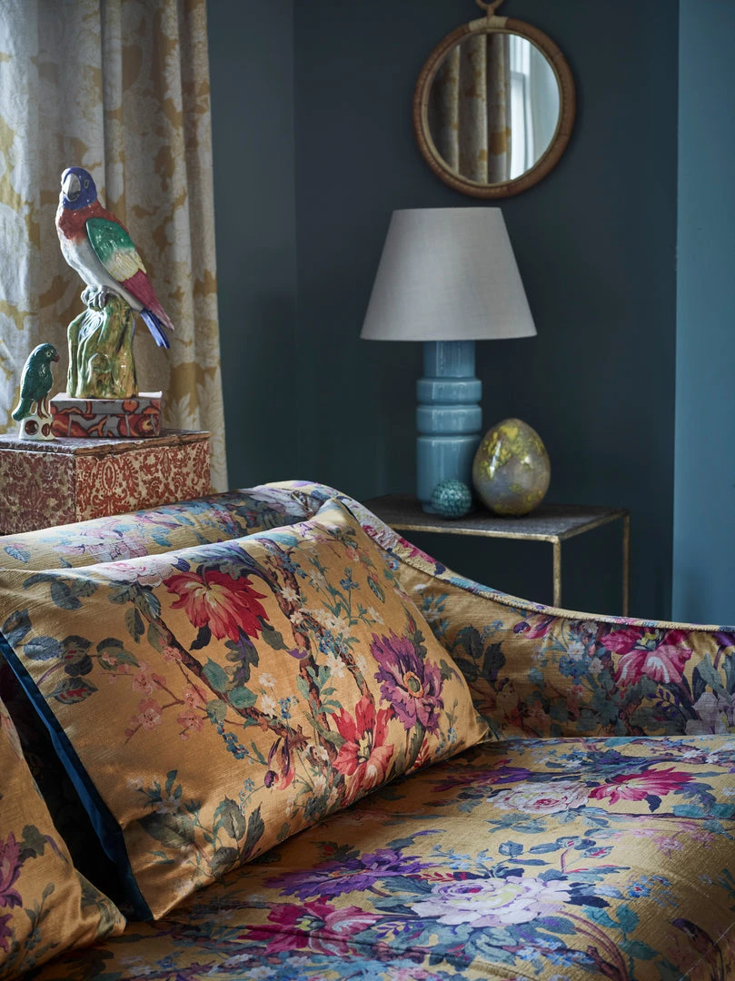 Lady Kristina was created from a series of exquisitely hand-painted artworks from the 1920s and ’30s. The reimagined version, Lady Kristina Rose, features a newly formed repeating layout. It is expertly printed in Italy onto our Vintage Velvet – a beautiful mixed-fibre base that’s suitable for both heavy domestic and contract use. Luxurious in feel and vibrant in colour, this velvet’s elegant drape also makes it ideal for heavier curtains with blackout or draft-excluding qualities.