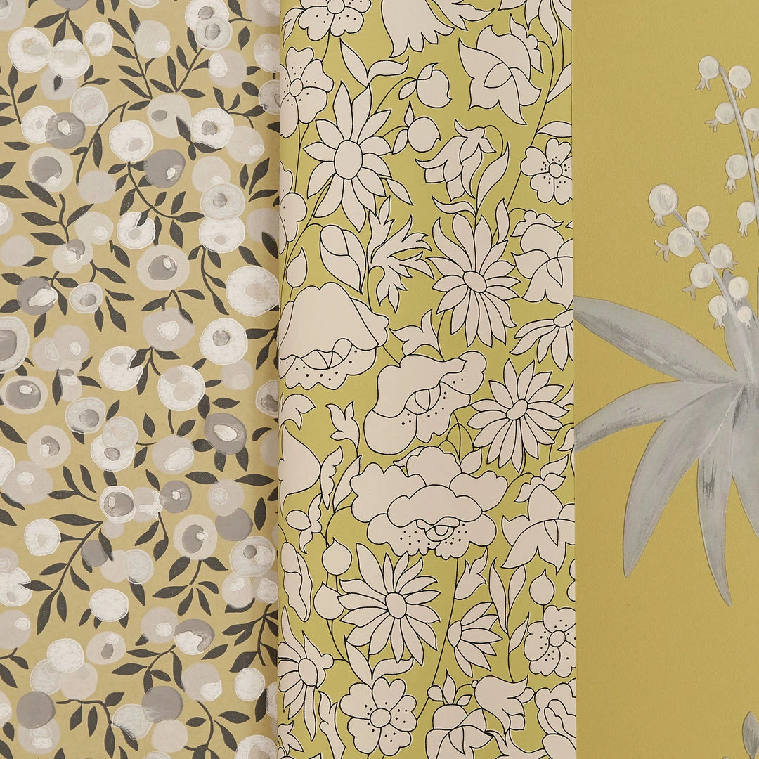 Wiltshire Blossom, the most iconic 1930s leaf-and-berry Liberty print is repainted and re-engineered into a contemporary furnishing design. It is printed using a hybrid technique which allows both flat colour and raised reticulated pigment to sit side by side, providing a beautiful tactility and clarity of print mark, rendered in both matte and metallic pigment.