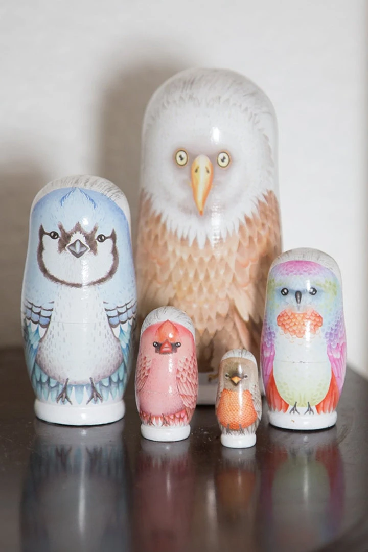 These gorgeous nesting dolls based on native American birds will make a beautiful addition to any home. Each design is hand-painted, with great attention to detail and a truly nostalgic feel.
