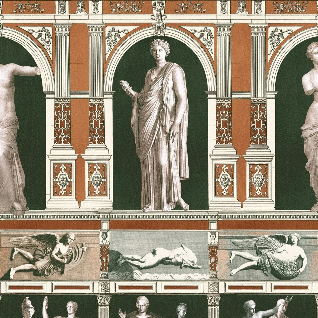 Adorn your walls with the Statues Antique wallpaper from Mind The Gap. Featuring beautifully painted statues, inspired by the famous statues found at the Musee Royale, the French Museum. The perfect statement for any room. Easy to put up with the paste the wall application and will enhance any room whether it is one wall or all. This wallpaper is digitally printed using eco-friendly inks. Printed over three rolls to maximise the pattern repeat. Available in both Orange and Taupe.Â