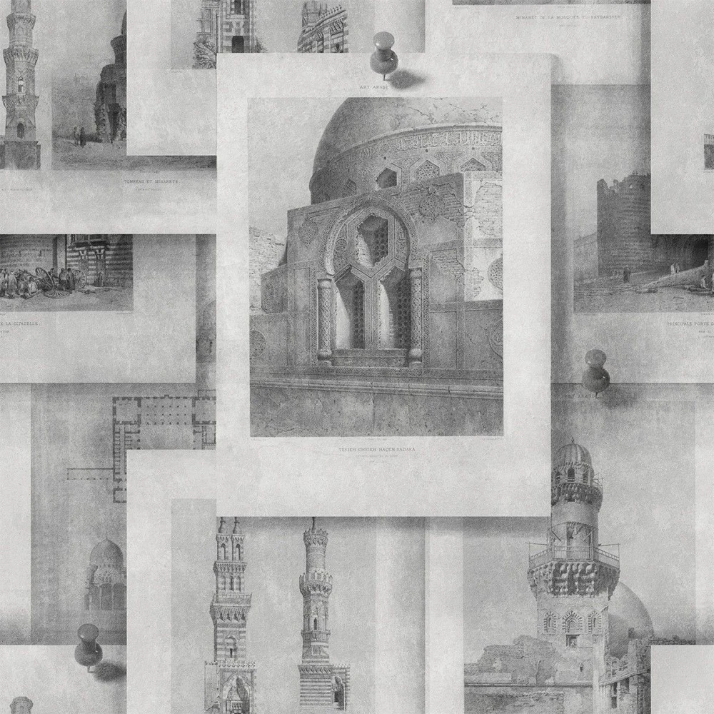 Travel to Cairo, Egypt to immerse yourself in the Arabian Monuments Wallpaper from Mind the Gap, featuring beautiful buildings and monuments. Use to enhance any room whether a maximalist statement or feature area. Also available in Black and White.