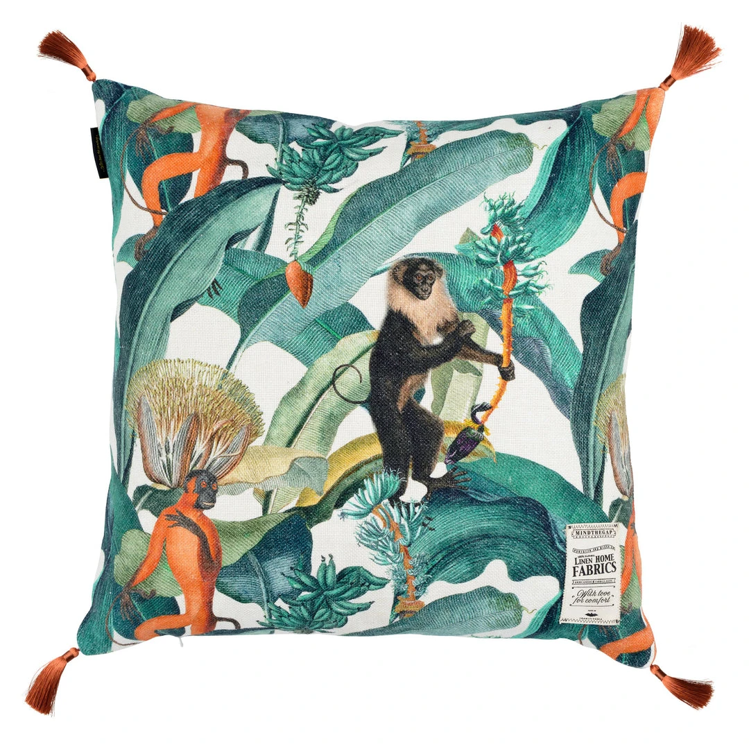 Our distinctive cushions show beautiful patterns and details of our fabrics. Made of heavy linen or cotton pile velvet all cushions are printed in England using traditional methods. Our cushions come with a variety of finishes such as fringes, tassels, pom-poms or printed borders adding little touches of luxury and uniqueness. Linens are stonewashed finished for softness and vintage effect.Â