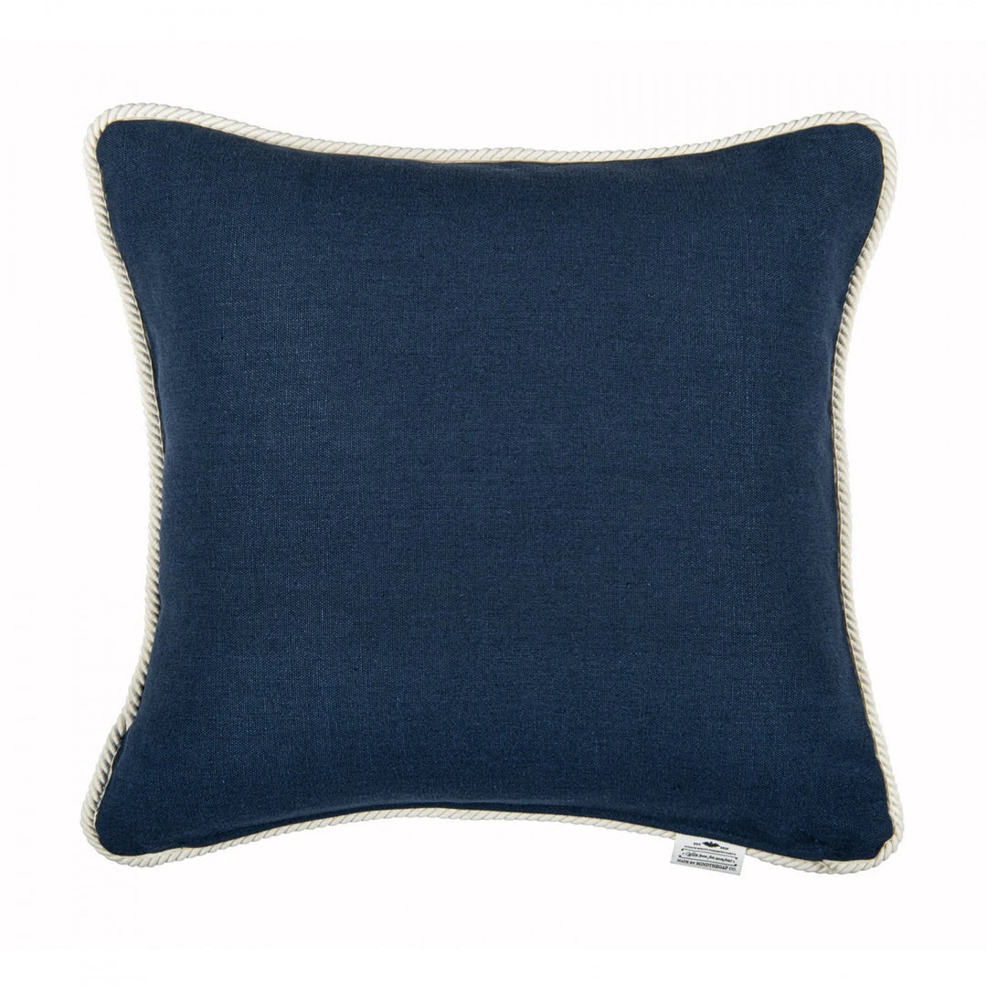 Cheering along the summer vibes from a holiday luxury yacht, the AHOY! Linen Cushion sets a bold statement in deep marine colours. With a large stylish crest embroidery placed over the elegant indigo blue linen, the cushion is finished with an off-white rope border for a marine visual effect. Comes with feather filling.