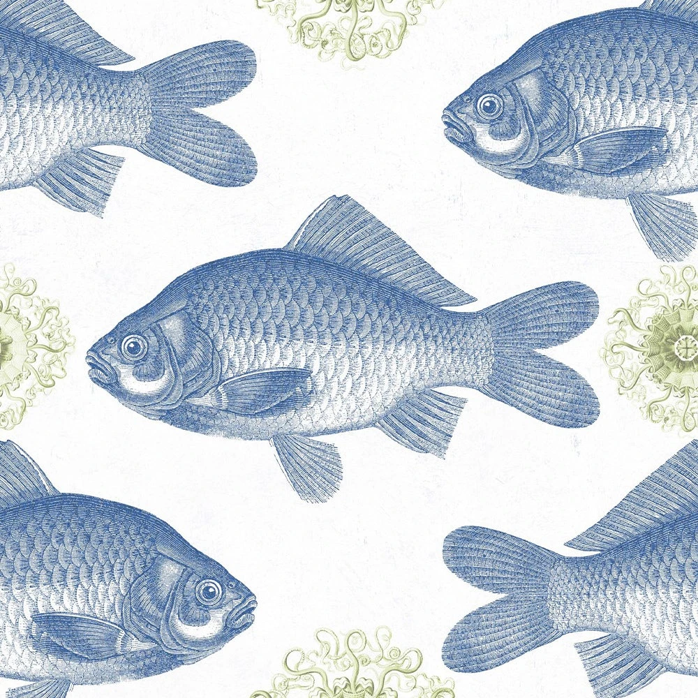 - Bring a touch of whimsy to your home with the Mind The Gap Blue Skies Ahead Fish Blue Wallpaper. Featuring a playful fish design against a serene blue sky backdrop, this wallpaper is perfect for adding a unique and artistic flair to any room.