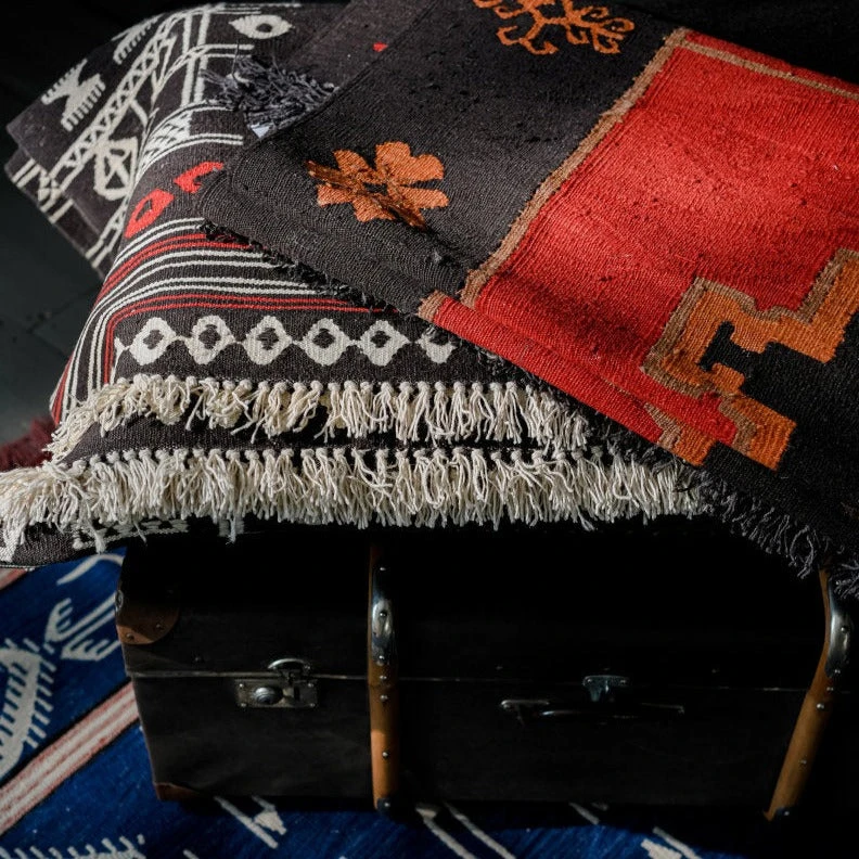 The finishing of these rugs is smooth yet robust enough, making every Kilim a long-last delightful experience for your home. To achieve a distinctive antique effect and to get more softness, our kilims are subject to a handwash finishing process.