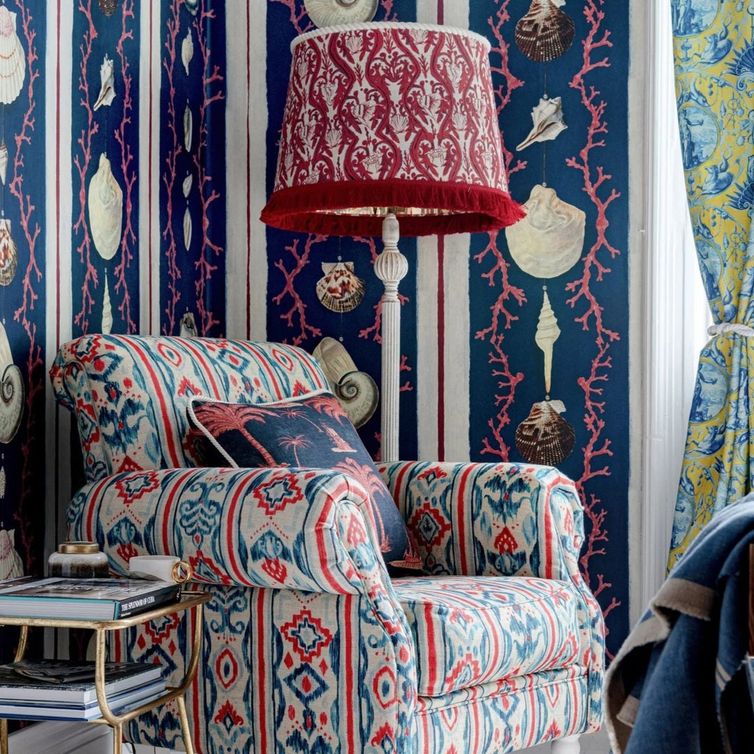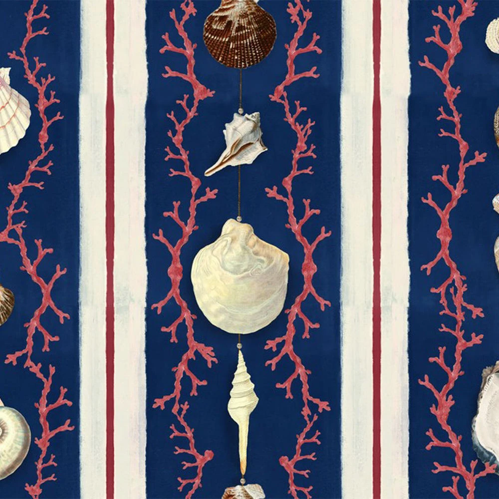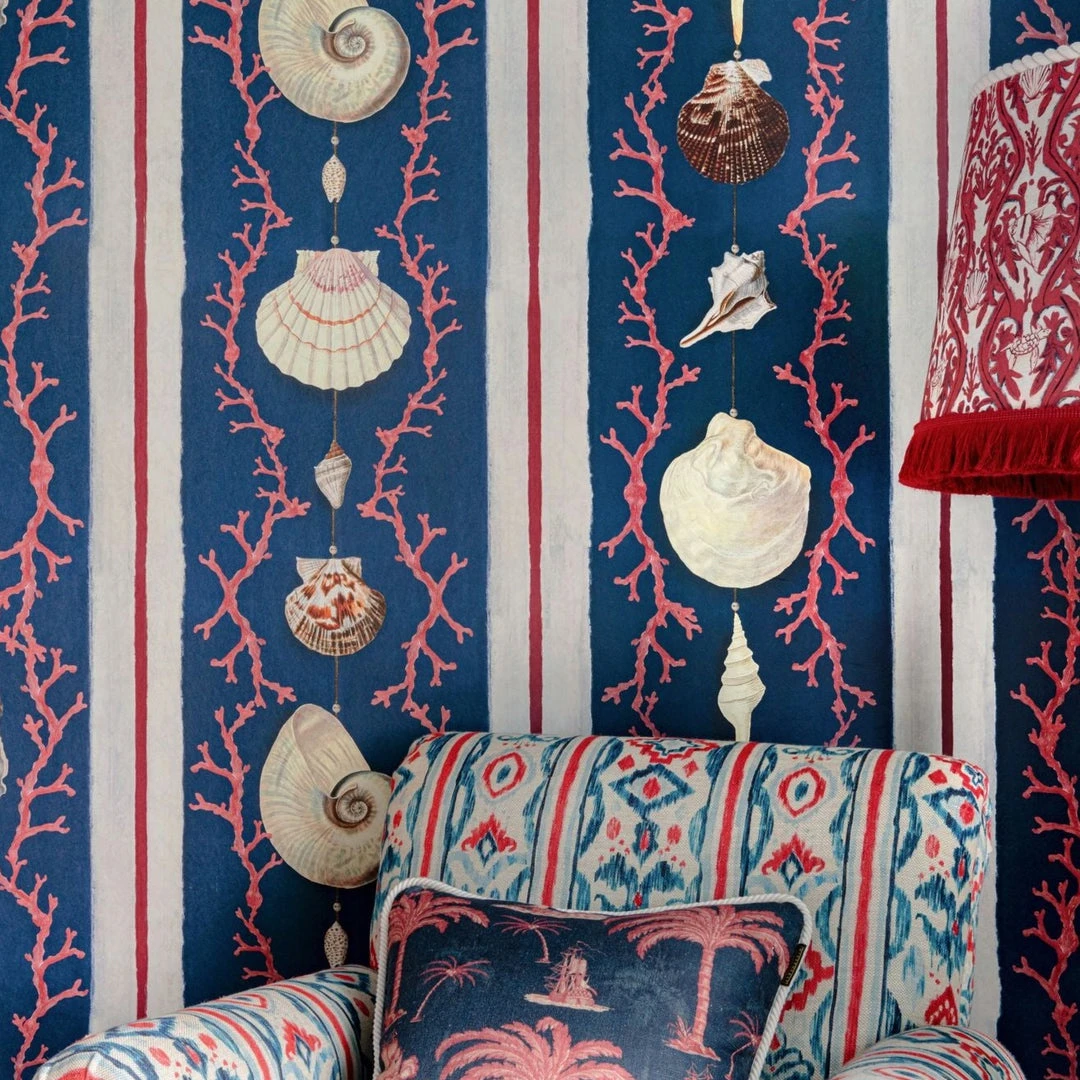 Decorate your walls with the vibrant Coquillage wallpaper from Mind The Gap. Featuring beautifully illustrated seashells, ancient limestone and a range of other sea rocks from ancient Greece, this design will bring your home to life and add a statement to any home. Easy to put up with the paste the wall application and will add a bit of quirk to any room whether it is one wall or all. This wallpaper is digitally printed using eco-friendly inks. Printed over three rolls to maximise the pattern repeat. Available in both bright blue and samba red.Â