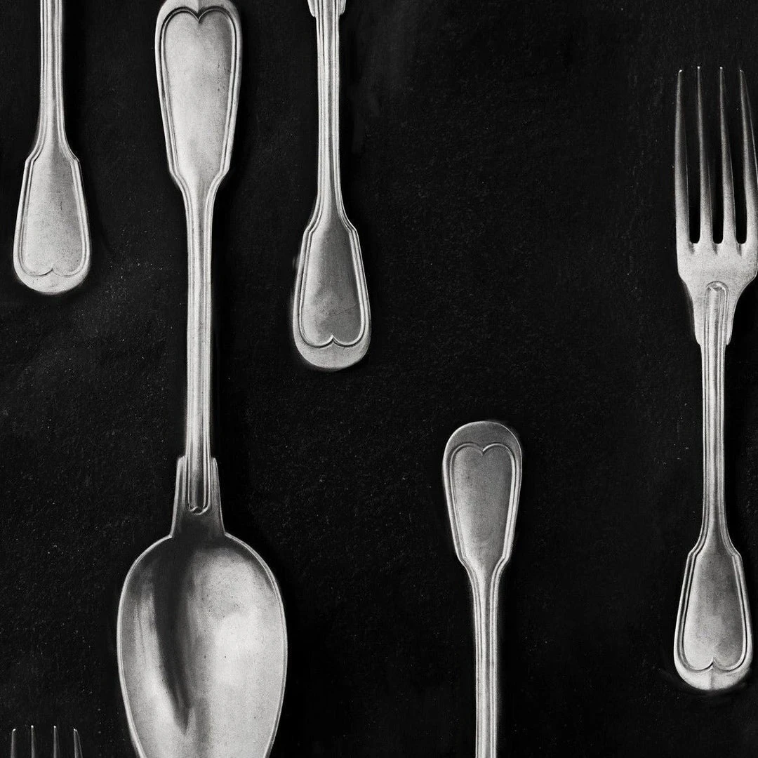 Decorate your walls with the Cutlery wallpaper from Mind The Gap. Featuring large-scale elegant cutlery floating upon a dark backdrop. The perfect statement for any wall in your kitchen or dining room. Easy to put up with the paste the wall application and will enhance any room whether it is one wall or all. This wallpaper is digitally printed using eco-friendly inks. Available in brass, copper or silver.