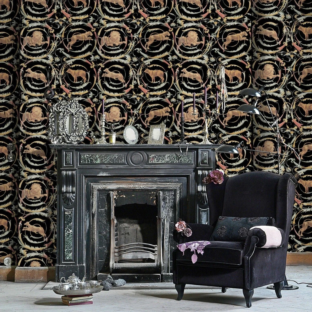 Make a statement with the gorgeous Fresce Anthracite wallpaper from Mind The Gap, featuring intricately painted animals leaping through rings, inspired by the historical remains of Pompeii. Easy to put up with the paste the wall application and will enhance any room whether it is one wall or all. Also available in Grey.Â