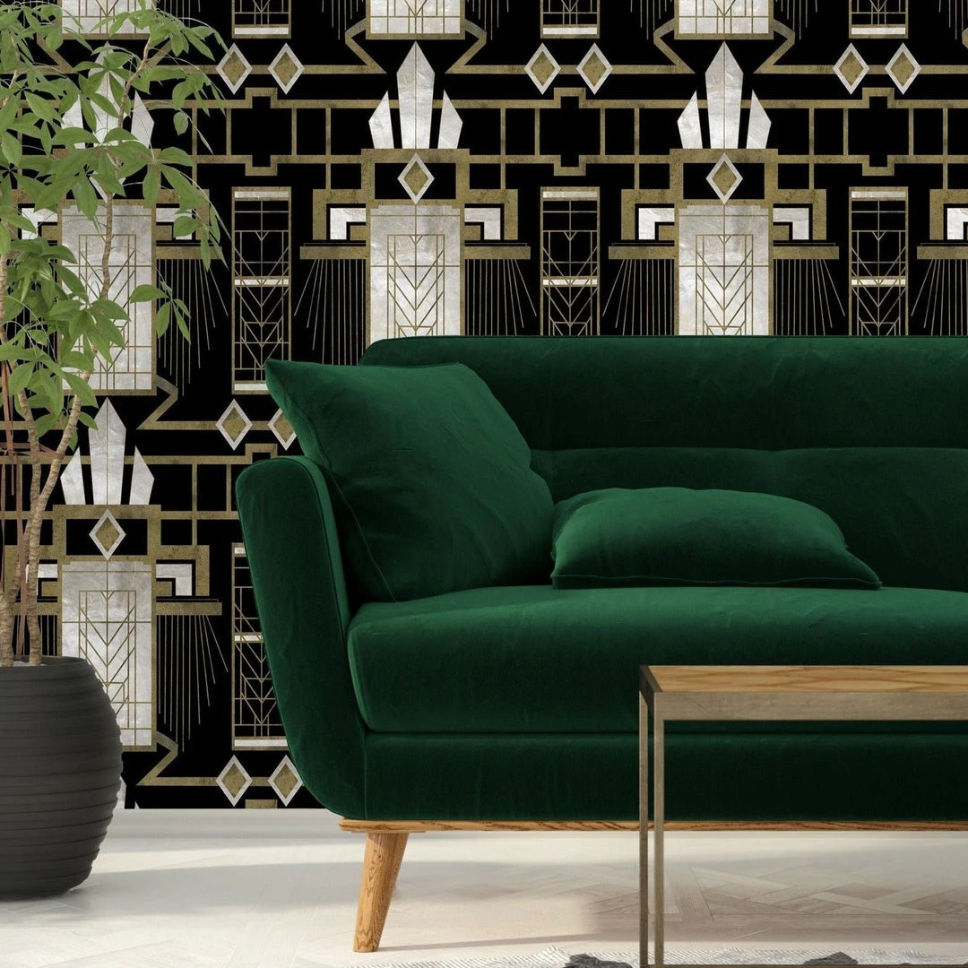 The perfect statement wallpaper for an Art Deco home. Adorn your walls in moody black and gold glamourous detailing with the Glamour Dark wallpaper from Mind The Gap, creating the ultimate sensation of opulence and grandeur in any room. Easy to put up with the paste the wall application and will enhance any room whether it is one wall or all. Also available in a lighter colour palette.Â