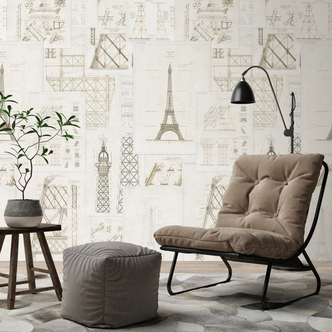 Let your wallpaper inspire you with the detailed drawings and plans of the famous Eiffel Tower in Paris, the city of love. Easy to put up with the paste the wall application and will enhance any room whether it is one wall or all. Also available in Taupe and Anthracite. Printed over three rolls to create an impact.Â