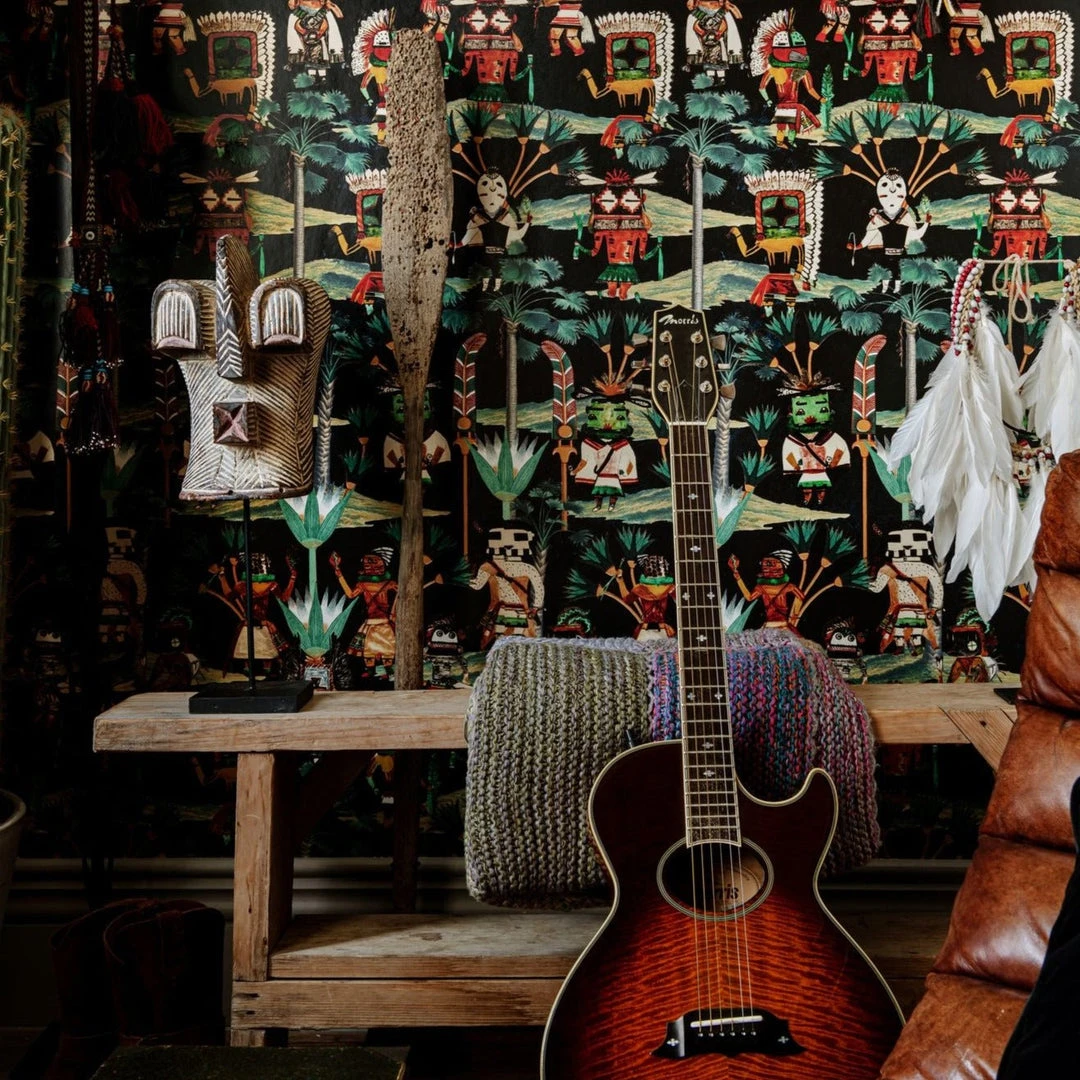 Decorate your walls with the rich and vibrant Hopi Spirit wallpaper from Mind The Gap. Inspired by the Indigenous Hopi tribe, living on the sandy, heat-soaked plains of Arizona when America was first discovered. Admire the decorative feathers, masks and historic patterns used in traditional ceremonies. A perfect statement to make an impactful feature in any home. Easy to put up with the paste the wall application and will add a bit of quirk to any room whether it is one wall or all. This wallpaper is digitally printed using eco-friendly inks. Available in both taupe and anthracite.