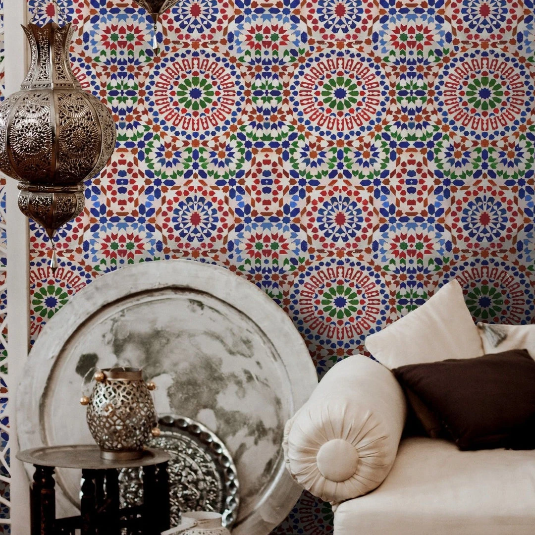 Surround yourself with the beautiful Mosaic wallpaper from Mind The Gap. Featuring beautiful, vibrant tiles inspired by the gorgeous mosaics in Morocco. The perfect statement for any space. Easy to put up with the paste the wall application and will enhance any room whether it is one wall or all. This wallpaper is digitally printed using eco-friendly inks.Â