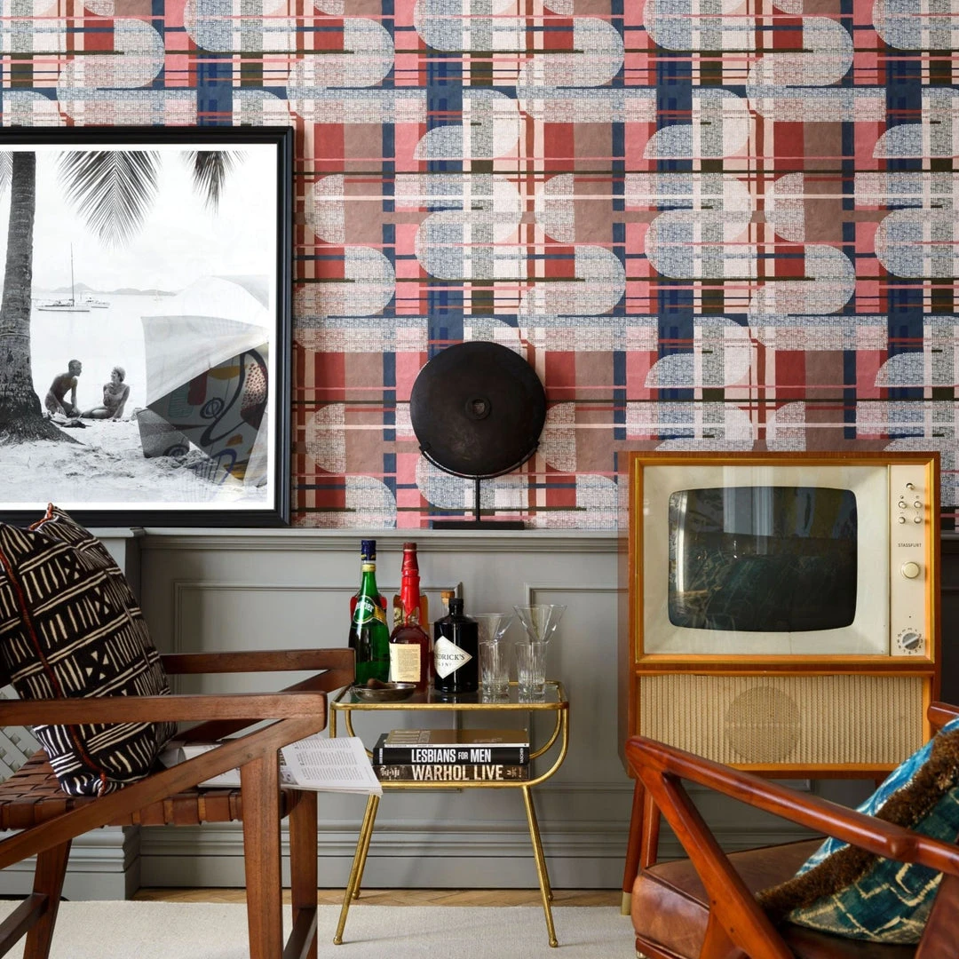 Decorate your walls with the colourful Interference wallpaper from Mind The Gap. Inspired by the Bauhaus Movement, this design features the iconic retro wave shape paired with the plaid to create an unexpected but exciting contrast. A perfect statement for any contemporary home. Easy to put up with the paste the wall application and will add a bit of quirk to any room whether it is one wall or all. This wallpaper is digitally printed using eco-friendly inks.Â