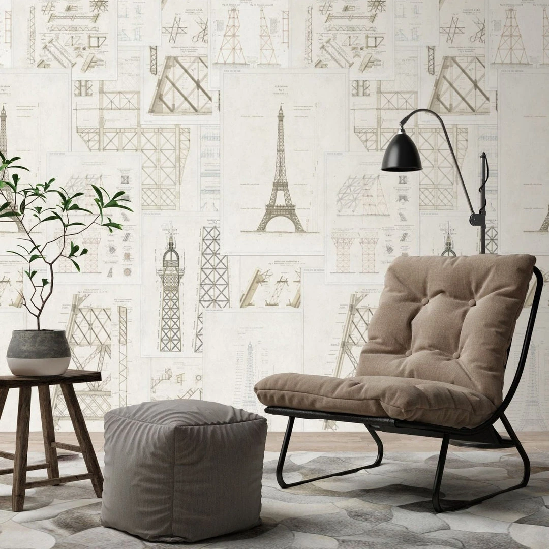 Let your wallpaper inspire you with the detailed drawings and plans of the famous Eiffel Tower in Paris, the city of love. Easy to put up with the paste the wall application and will enhance any room whether it is one wall or all. Also available in Anthracite and Blue. Printed over three rolls to create an impact.Â