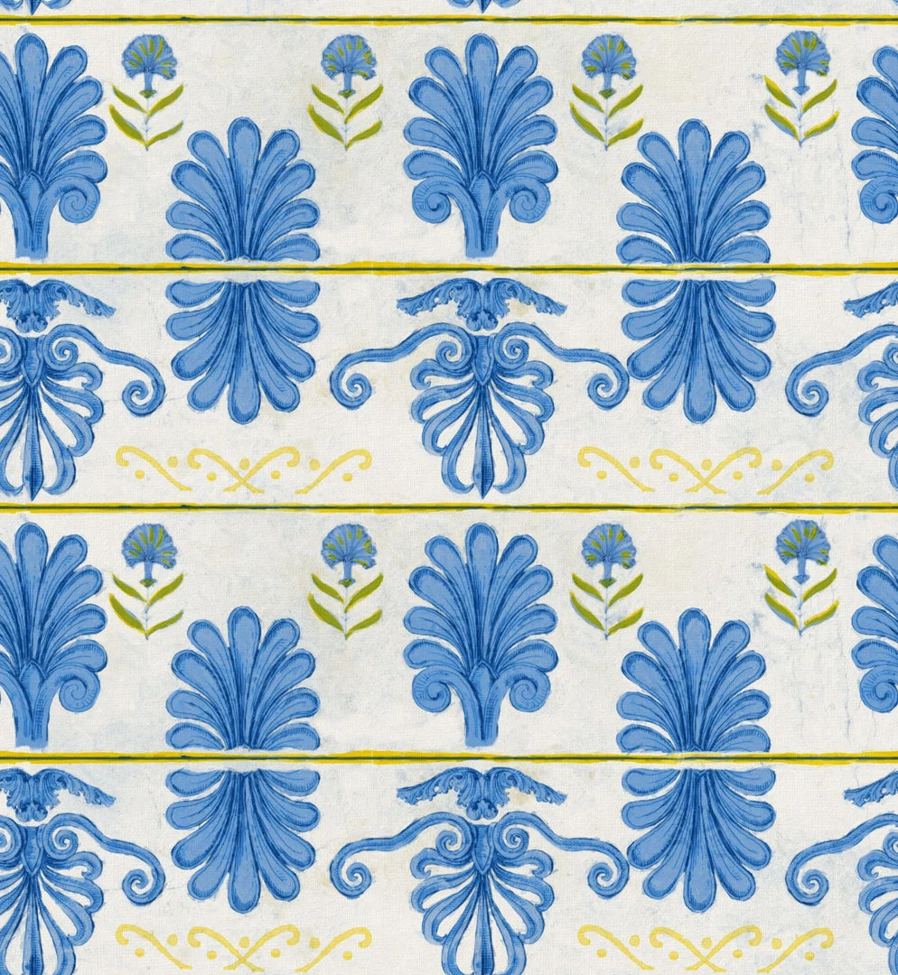 Fine ornaments showing decorative algae are highlighted in this delicate embellished pattern, creating a luxurious decorative wallpaper. Feel the warmth of a hot summer’s day wrapped within the walls of a splendid holiday villa. This complementary design is available in Island Green, Azure, Taupe, White Sand and Lemon.