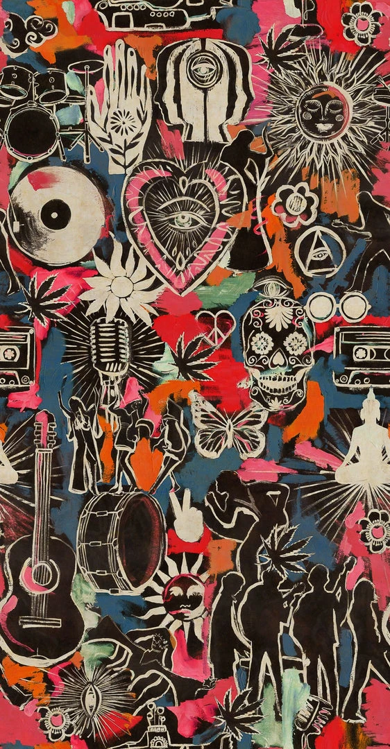 For festival lovers across the world, who love the community such events bring and the sense of belonging in a specific place and time. Fill the room with memories where no rules or systemic restraints belong. A moment where you are at one with the music, at one with the world and at one with yourself. Peace and happiness overcome you as youβre immersed in the melodies as the sun sets, feeling full of love as people dance around you. Your eye is drawn to intricate details across this FESTIVAL MEMORIES wallpaper, designed with both light and dark backgrounds encouraging you to party all through the day and night.