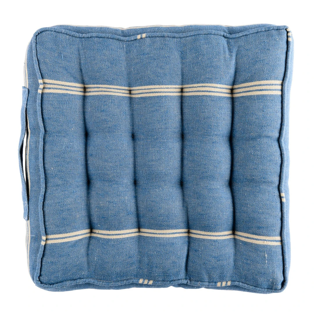 Revamp your dining or garden chairs with these Katalin stripe blue and beige chair cushions. Hand sewn and finished with a self fabric piped edge and linen handle. Filled with thick poly foam insert and polyester cove for a long lasting shape.Â