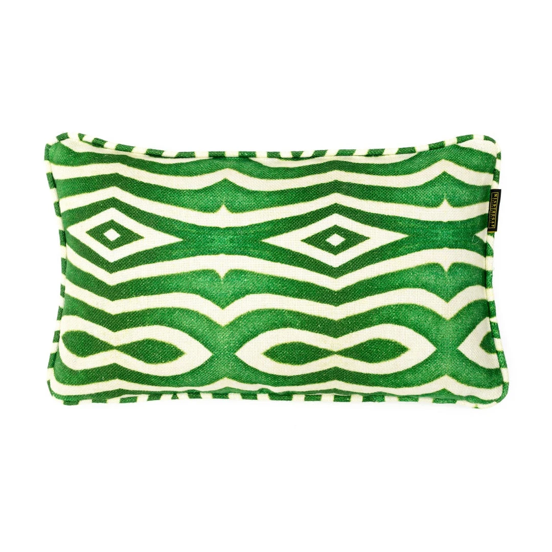 An exotic design of greens and white in our heavy gauge linen, bringing the tropics to any room. Stonewashed linen finished with piping and 100% duck feather filling.