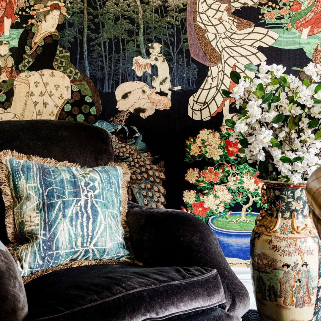 Decorate your walls with the beautiful Samurai And Geisha wallpaper from Mind The Gap. Make your walls come alive as vibrant, traditional Japanese characters emerge from within a dark forest. Each figure is adorned with rich and colourful kimonos, the flowing fabric bringing energy to the design. A vivacious statement for any home. Easy to put up with the paste the wall application and will add a bit of quirk to any room whether it is one wall or all. This wallpaper is digitally printed using eco-friendly inks. Printed across three rolls to maximise the pattern repeat.Â