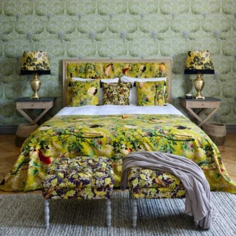 Find yourself in amongst the branches of Oak trees and rich green foliage with the Savage Leaves wallpaper from Mind The Gap. Perfect for creating a statement in any room. Easy to put up with the paste the wall application and will enhance any room whether it is one wall or all. This wallpaper is digitally printed using eco-friendly inks. Also available in rich green and light green.Â