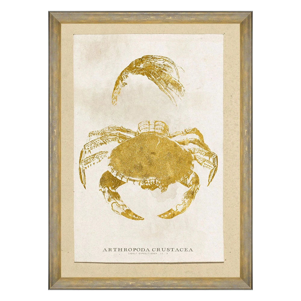 Arthropoda Crustacea, from a series of six framed art prints of Pacific creatures and corals. Illustrated and enhanced using gold foil, each print is then hand finished for a vintage look and applied on top of the mount board. Finished with an Artisan antique opal frame.  Â