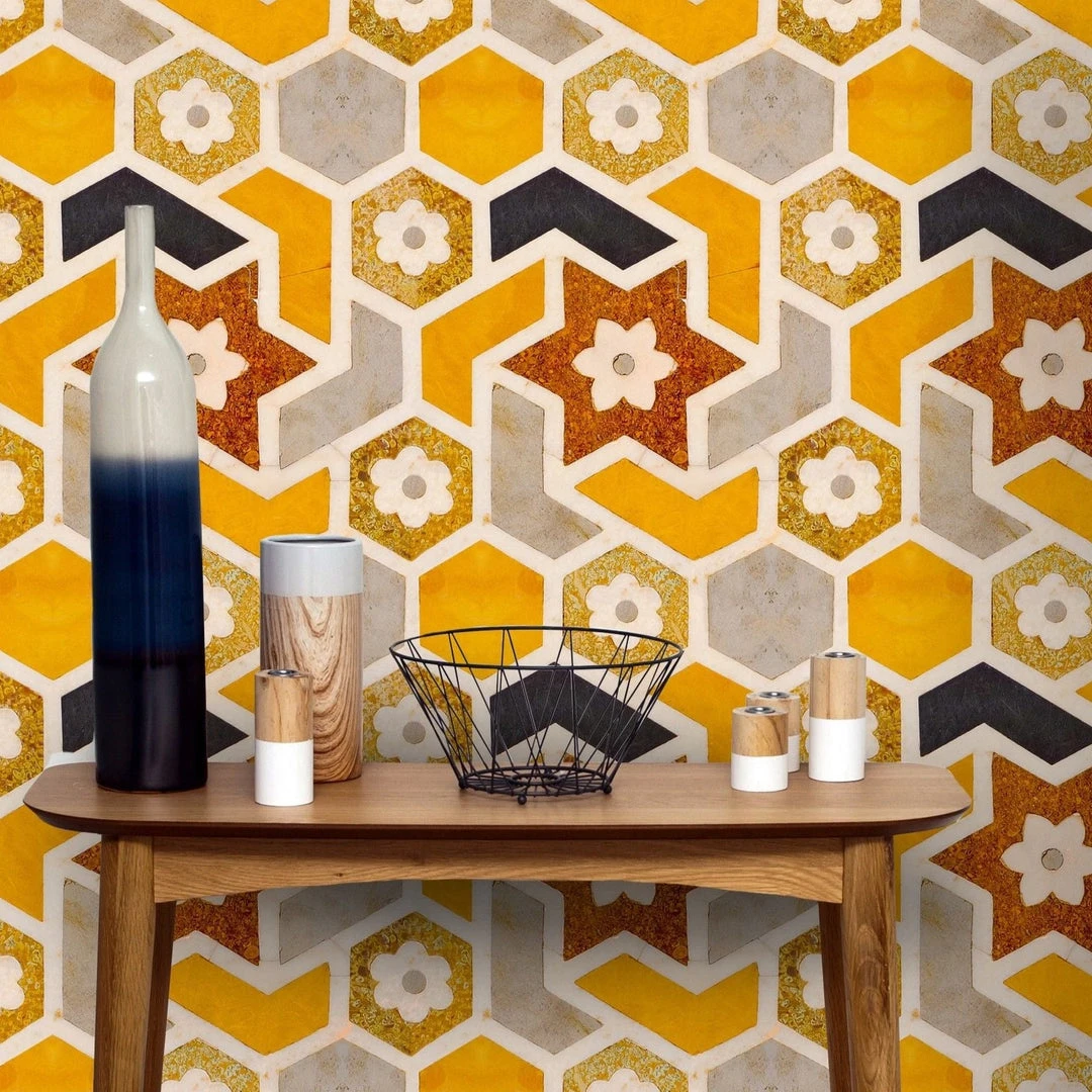 Decorate your walls with the Taj Mahal wallpaper from Mind The Gap. Inspired by the gorgeous interior of the Taj Mahal, this design will be sure to make a bright, vibrant statement on any wall. Easy to put up with the paste the wall application and will enhance any room whether it is one wall or all. This wallpaper is digitally printed using eco-friendly inks.Â
