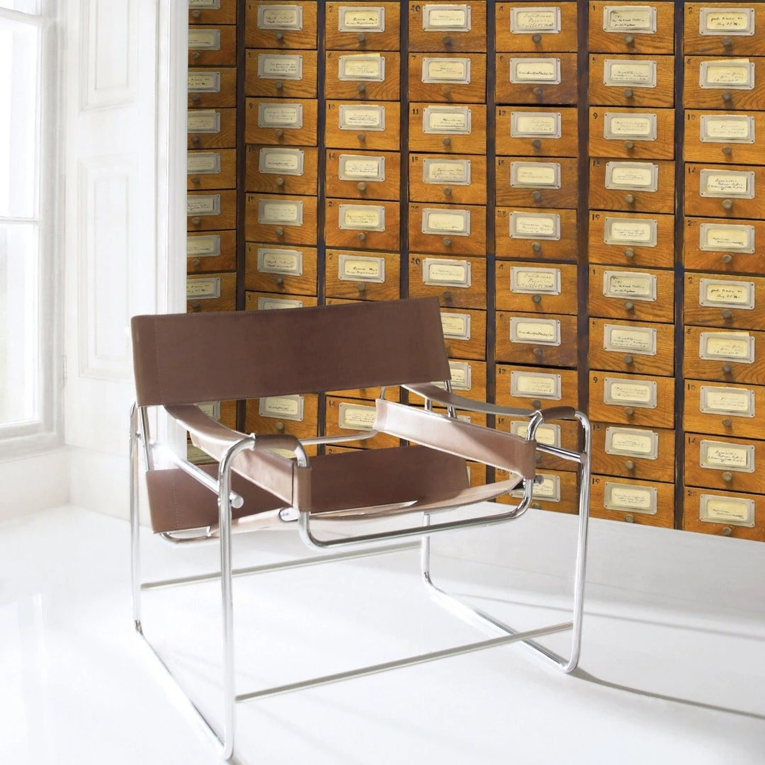 Decorate your walls with the Apothecary wallpaper from Mind The Gap. Featuring a range of vintage, personalised wood storage drawers, this wallpaper will be sure to make a statement in any home. Easy to put up with the paste the wall application and will enhance any room whether it is one wall or all. This wallpaper is digitally printed using eco-friendly inks. Printed across three rolls to maximise the pattern repeat. Available in neutral and warm.