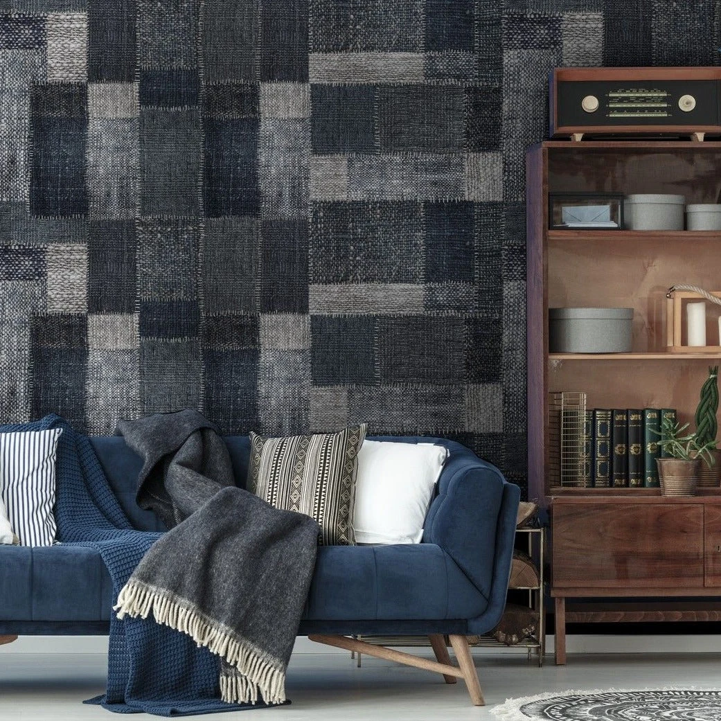 Turn heads with the vibrant indigo Jute wallpaper from Mind The Gap, perfect at adding texture and depth into any room. A denim patchwork designed to make a statement. Easy to put up with the paste the wall application and will enhance any room whether it is one wall or all. Also available in a washed colour palette. Printed over three rolls to create an impact.