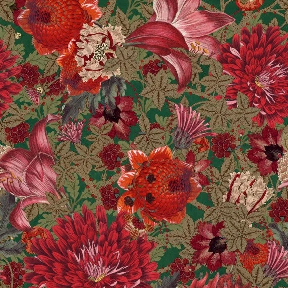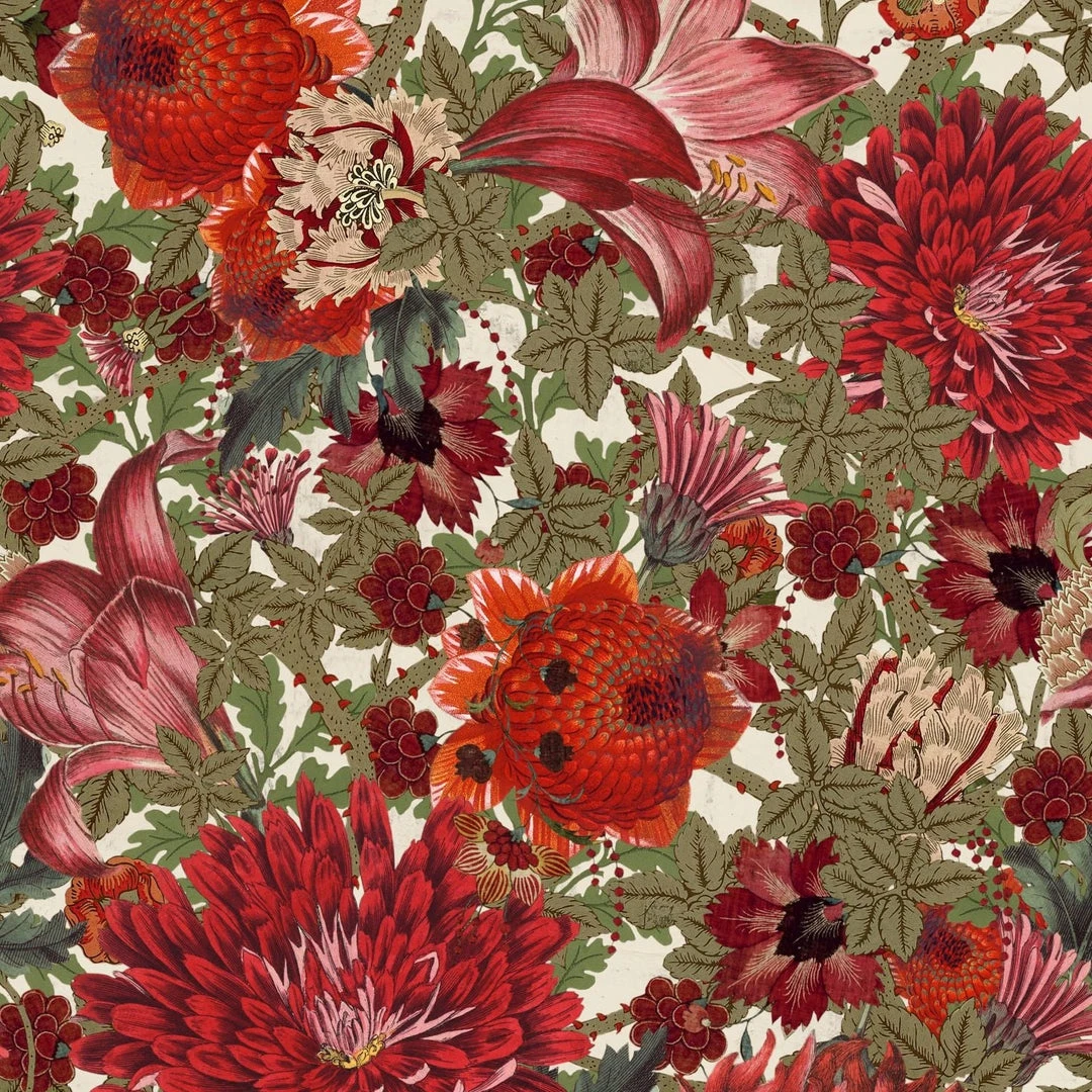 Unveiling the charm of nature’s authentic patterns, flares of flower details and bursts of bright colours in a beautiful botanical print. Available in light cream or green backgrounds. Folk Couture at it’s finest. Easy to put up with the paste the wall application and will add a bit of quirk to any room whether it is one wall or all. This wallpaper is digitally printed using eco-friendly inks.Â