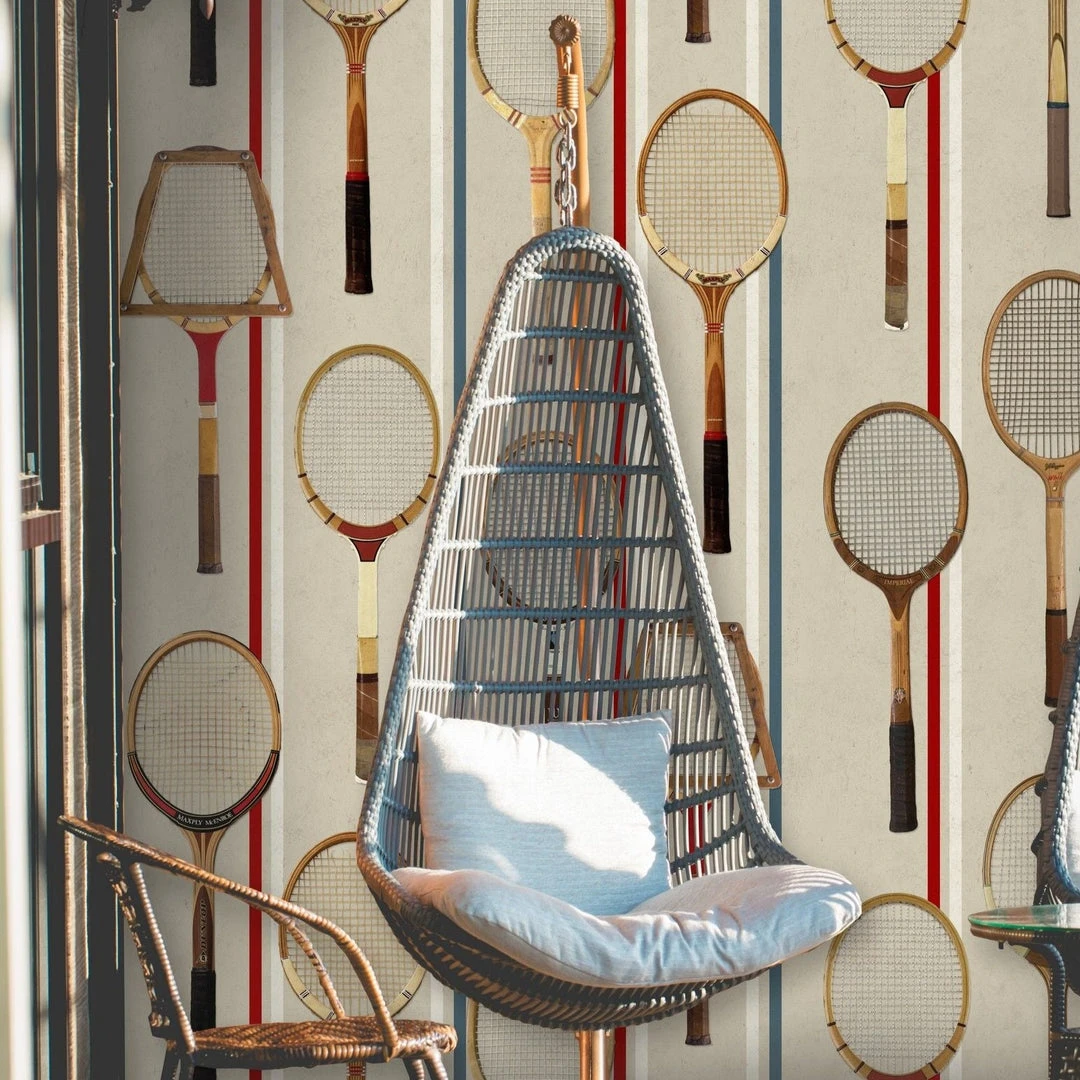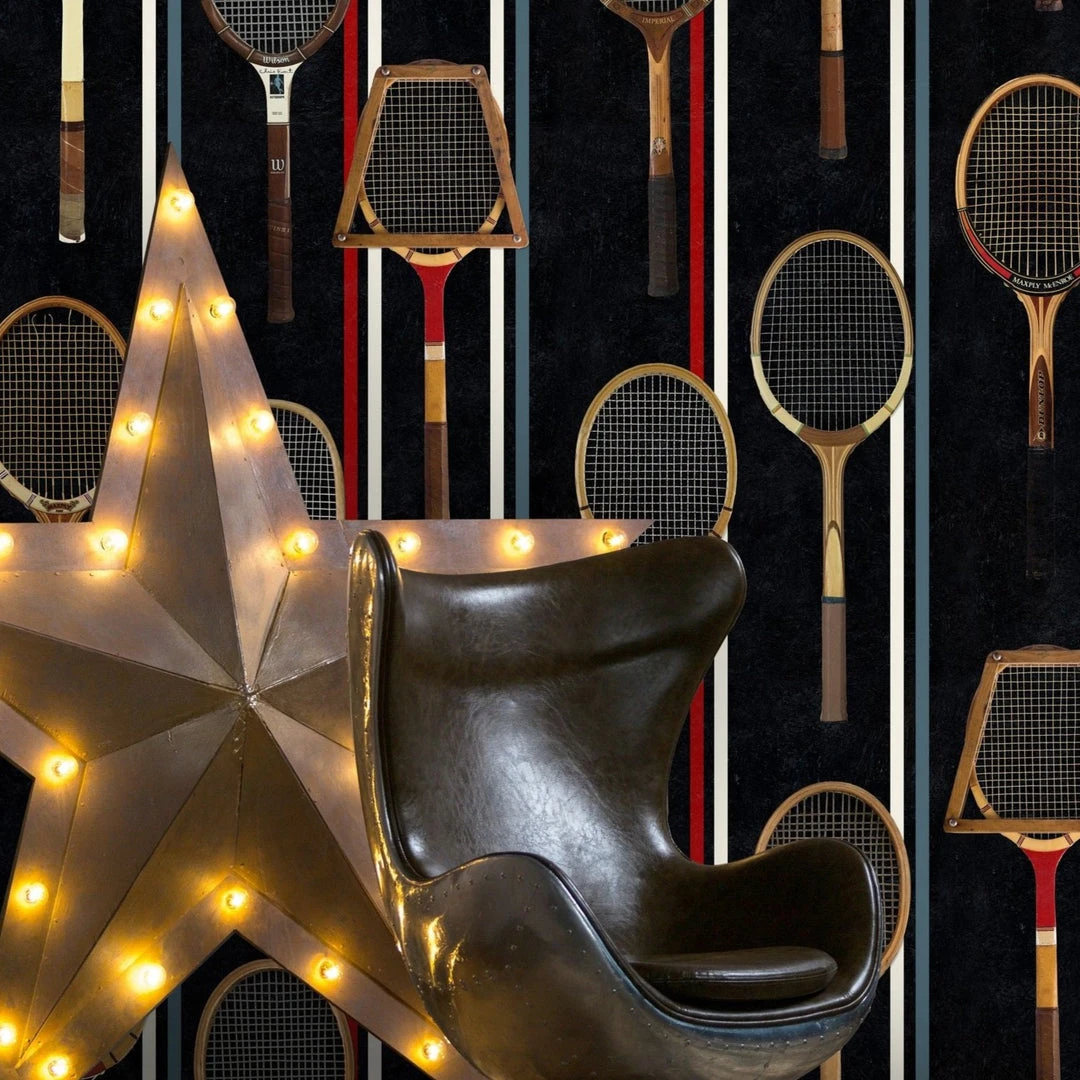 Let the games begin with The Game wallpaper from Mind The Gap. Featuring retro tennis rackets, this wallpaper will be perfect for any home with a love of all sports.Β Easy to put up with the paste the wall application and will enhance any room whether it is one wall or all. This wallpaper is digitally printed using eco-friendly inks. Printed across three rolls to maximise the pattern repeat. Available in Anthracite and Taupe.Β