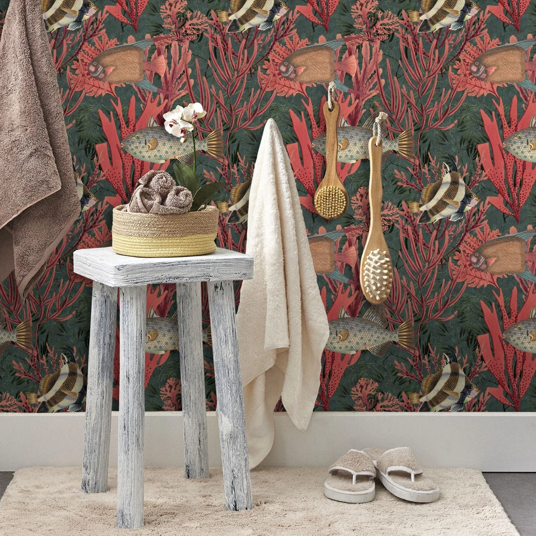 Swim with shoals of fish and immerse yourself under-the-sea with the vibrant and beautifully illustratedΒ UnderseaΒ wallpaper from Mind The Gap. The perfect, rich statement for any home.Β Easy to put up with the paste the wall application and will enhance any room whether it is one wall or all. This wallpaper is digitally printed using eco-friendly inks.Β