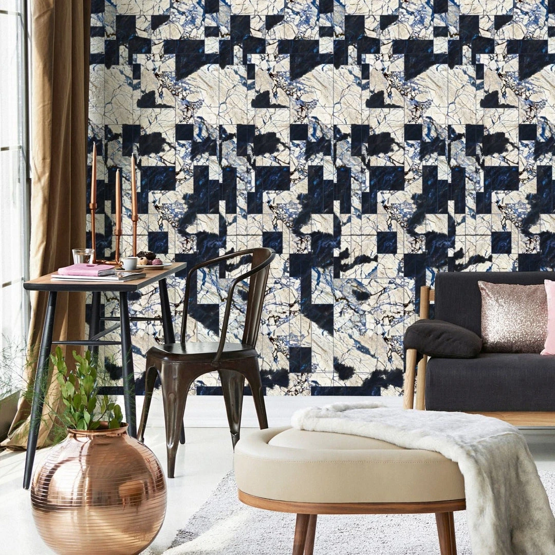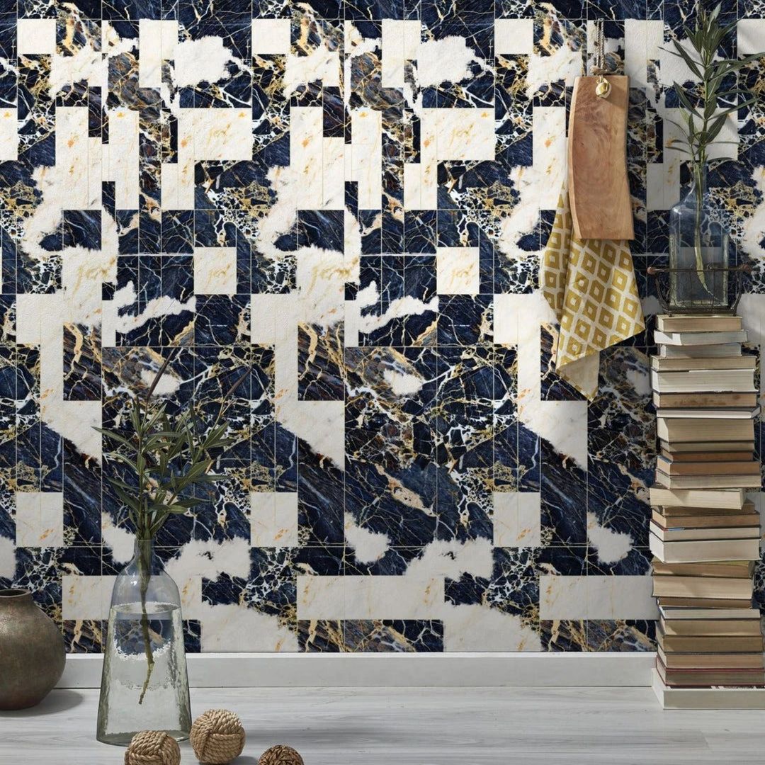 Decorate your walls with the Tribeca wallpaper from Mind The Gap. Inspired by Manhattan’s rich architectural details, this wallpaper features deep blue and soft cream toned marble tiles, making any wall look luxurious. The perfect statement for any contemporary home.Β Easy to put up with the paste the wall application and will enhance any room whether it is one wall or all. This wallpaper is digitally printed using eco-friendly inks. Also available in Original.Β