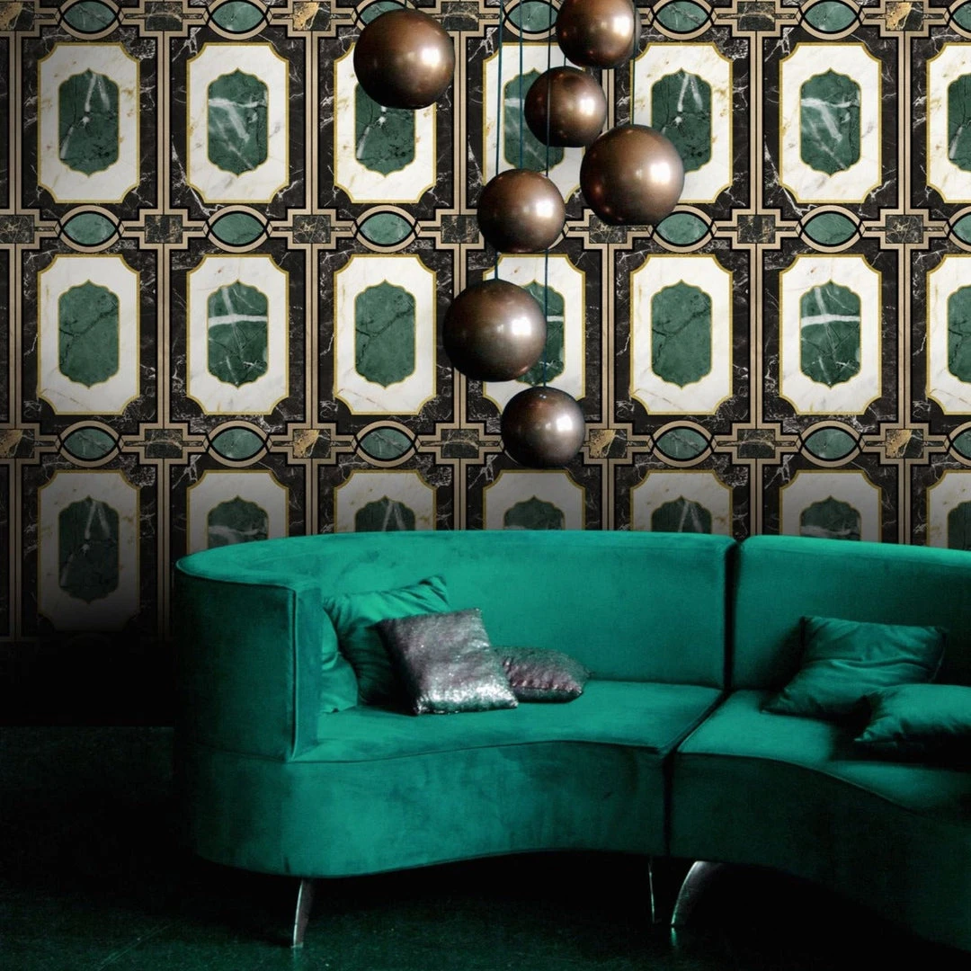 Decorate your walls with the Waldorf Ochre wallpaper from Mind The Gap. Featuring an Art Deco inspired design, this wallpaper is the perfect glamorous statement to any home. Easy to put up with the paste the wall application and will enhance any room whether it is one wall or all. This wallpaper is digitally printed using eco-friendly inks. Also available in Emerald.Â