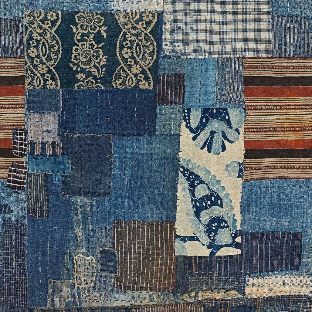 Denim symbolized the rise of the counterculture with its raw finish and variety of application referencing the characteristics of the movement itself. Become spellbound in the memories from each cutting across the WOODSTOCK BORO print with different patterns and materials giving a glimpse into the fashions and trends of the era. This patchwork collage brings a sense of materiality as you imagine running your hands across the different layers and textures which, when placed together, fill the room with a visceral, yet stylish backdrop.